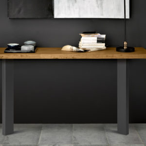 Our consoles come in various iterations, providing a broad and customizable selection to cater to your preferences and personal aesthetic. You have the option to choose from different metal finishes and genuine wood top finishes, enabling you to seamlessly blend them with your surroundings.